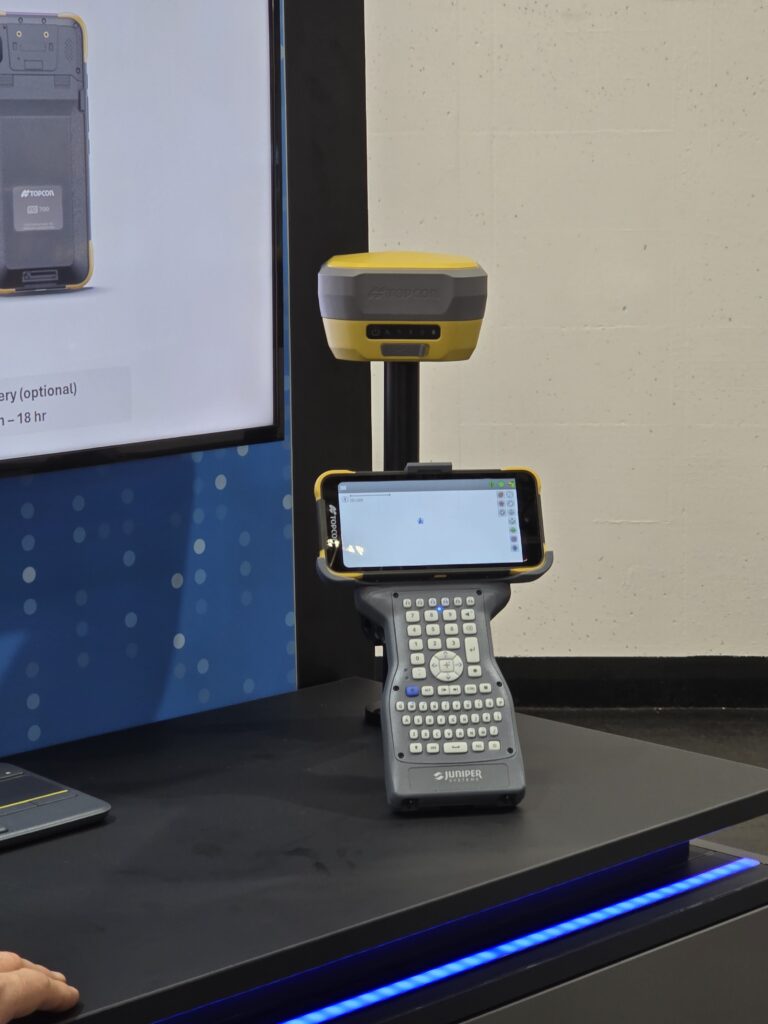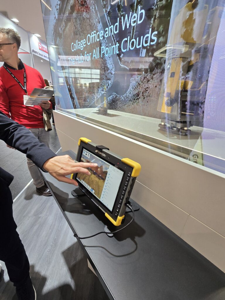Voor de klassieke landmeetkundige toestellen zoals totaal station en gnss’en waren bijna alle grote merken aanwezig: Topcon, Leica, Trimble, Geomax, Stonex, …